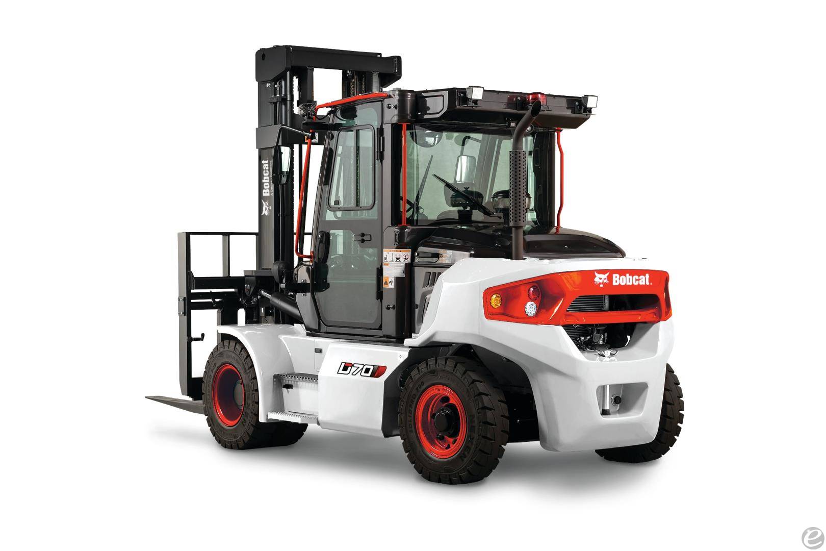 Model Year: 2025, Rated Lift Capacity: 15,500 lbs, Fuel Type: Diesel (HVO Biofuel Ready), Tire Type: Pneumatic, Brake System: Oil-Cooled Disc Brakes (OCDB), Engine: Bobcat 3.4L DM03V, Travel Speed (Loaded): 18.8 mph, Wheelbase: 90.6 in