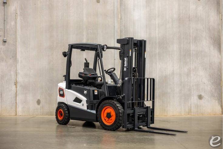 Model Year: 2025, Rated Lift Capacity: 6,000 lbs, Fuel Type: Diesel, Tire Type: Pneumatic, Brake System: Oil-Cooled Disc Brakes (OCDB), Engine: Bobcat 2.4L D24, Travel Speed (Loaded): 11.7 mph, Wheelbase: 66.9 in, , Picture is example of model series